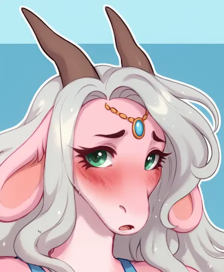 Negative prompt: zPDXL2-neg, score_6, score_5, score_4, futa, pubic hair, pubes, body hair, tan lines, bad anatomy, bad proportions, gross proportions, unnatural body, uncoordinated body, disfigured, ugly, deformed, fused bodies, body horror, malformed, mutated, mutation, bad hand, bad hands, bad fingers, mutated fingers, fused bodies, body horror, weird face, ugly face, conjoined, extra arms, bad text, x-ray, signature, young, floating, (ears:1.2), open mouth, short stack, large forehead, nude, holding object, object, bed, animal horns, collar, muscular, holding object, long legs, outline, headwear, laurel wreath, crown,