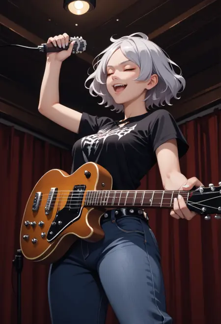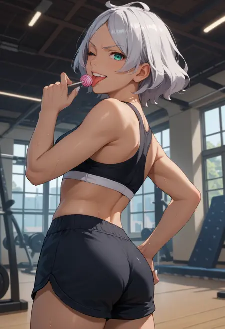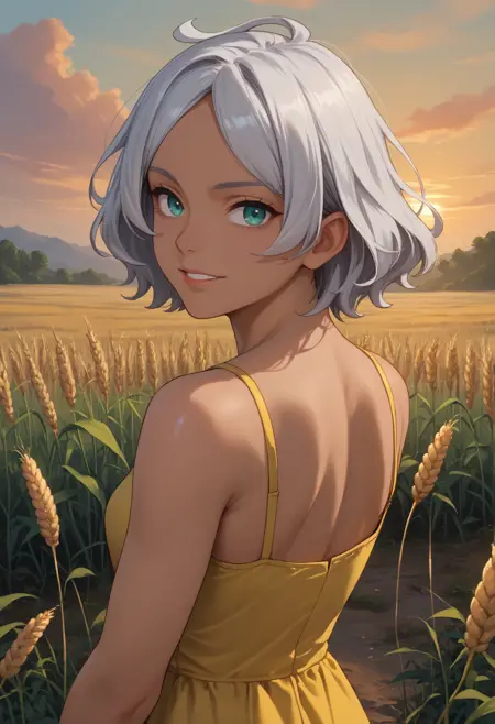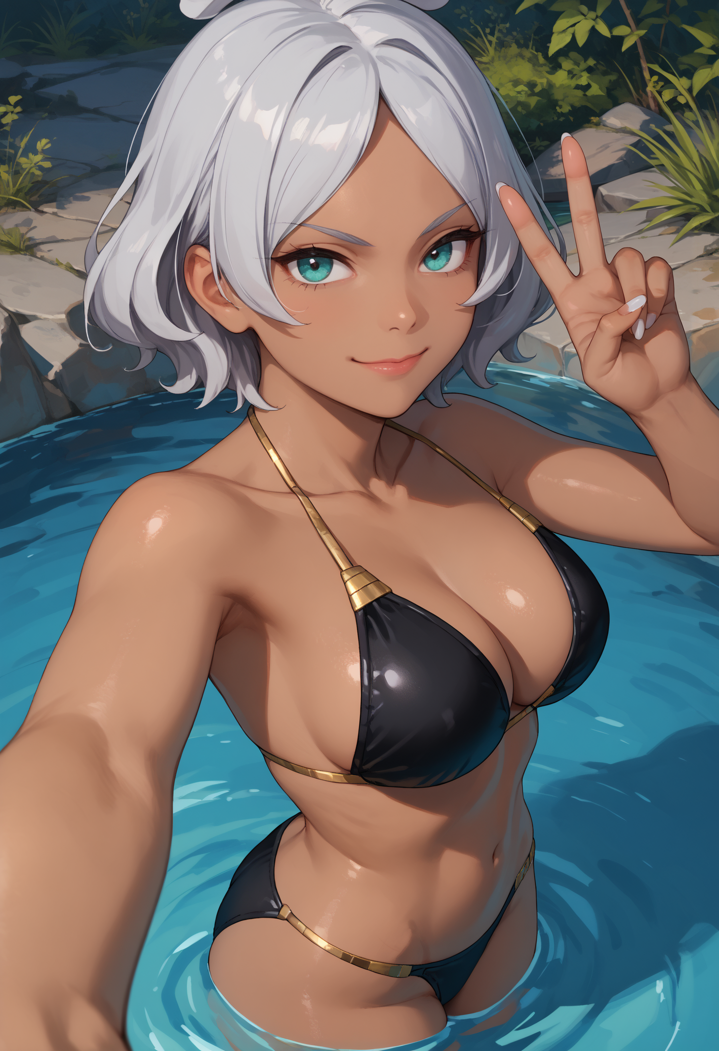 Always needed: "seciDo, dark skin, dark-skinned female, aqua eyes, silver hair, short hair" always needed for accuracy. Optionally add "white nails" for her proper nails.