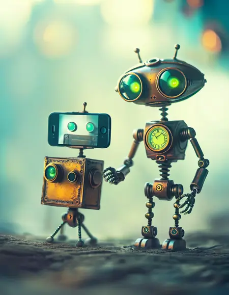 以ashraful-arefin风格拍摄的纸板机器人、网和飞舞的蝴蝶的照片