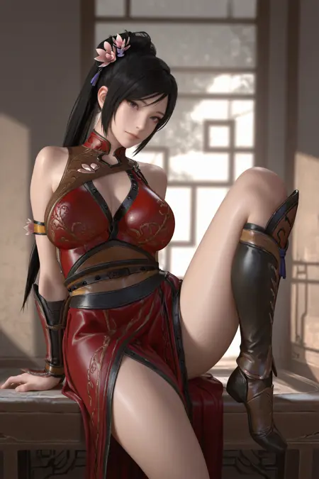 추천 긍정 프롬프트: lianshi, 1girl, solo, 검은 머리, 긴 머리, 폴라타일, 머리 장식, 빨간 드레스, 꽃, 큰 가슴