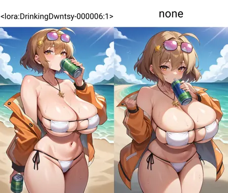 Pony is no stranger to the drinking concept. However if you tag drinking it will show the char drink with a straw pretty often wich is annoying if you just want your waifu to drink out a can or a bottle that obv shouldn't have a straw in it.