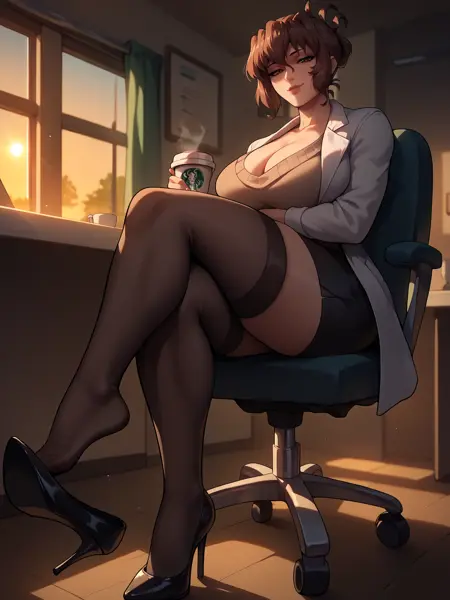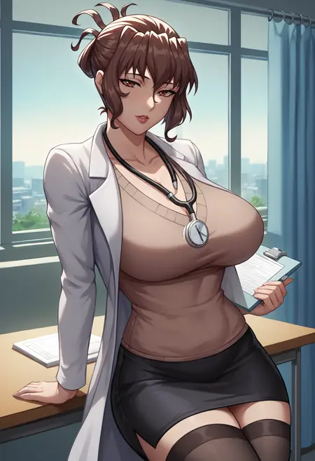 默认服装设定: 医生装,实验袍,听诊器,铅笔裙,及膝袜,高跟鞋