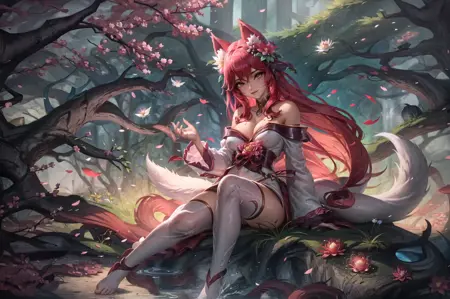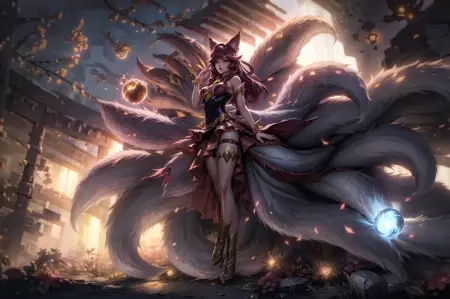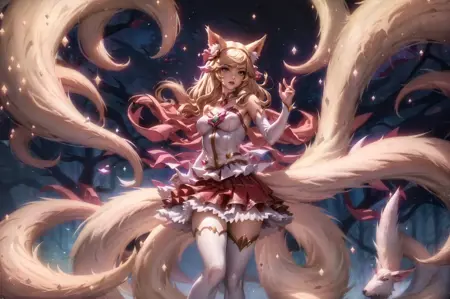 Optional trigger words: multiple tails, yellow eyes, animal ears, fox ears, fox tail