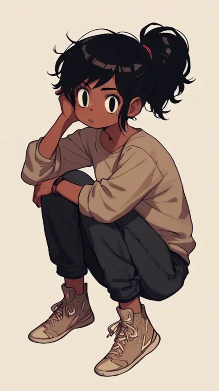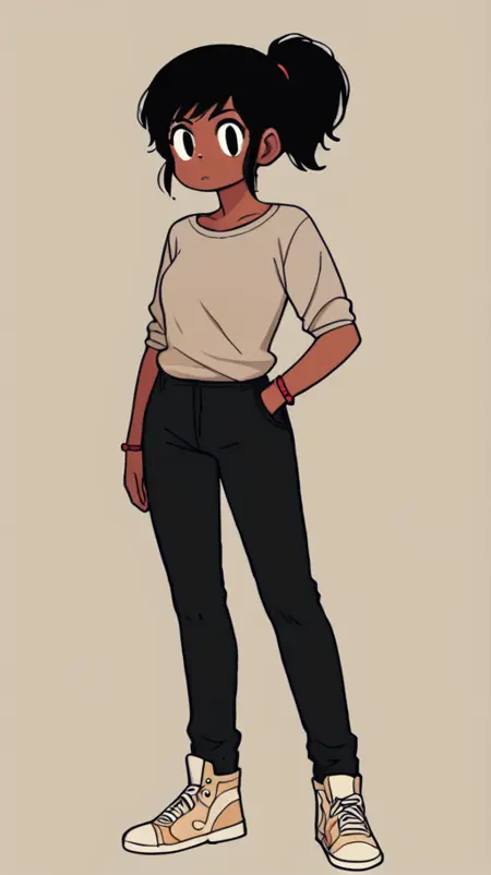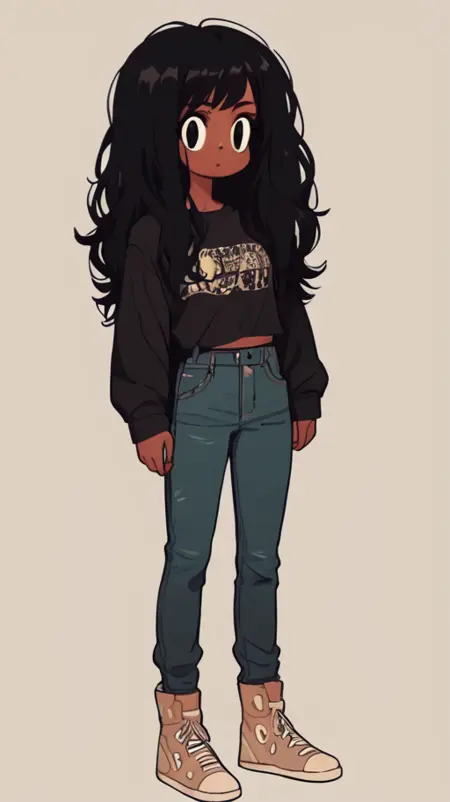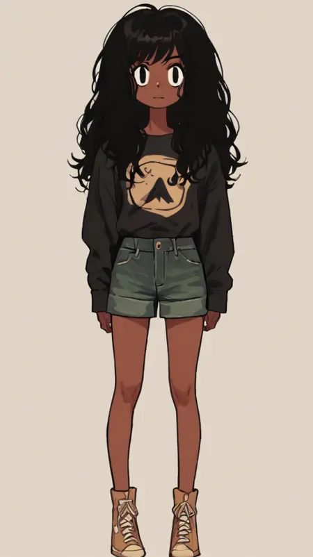 推荐标签:score_9,score_8_up,score_7_up,1girl,solo,黑发,深色皮肤,深色皮肤女性,长发,黑眼睛,