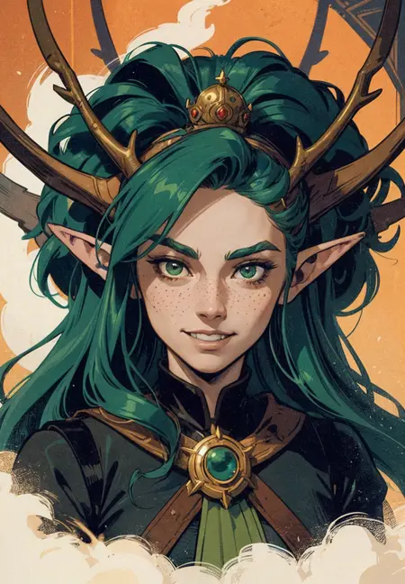 [How],[what/who],[where],[other] exaple: (ultradetailed fantasy illustration:1.3), elf witch woman with a large hat and purple dress, on a snow-covered mountain with blowing wind, complex lighting and strong sense of movementQuick Negative Prompt: