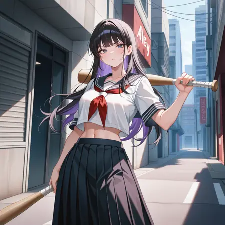 旨在更一致地还原女不良少女服装的概念/服装LoRA,相较于常规提示效果更优