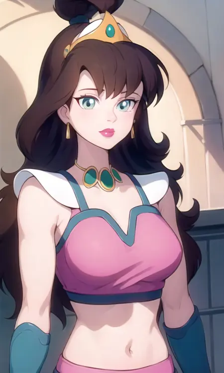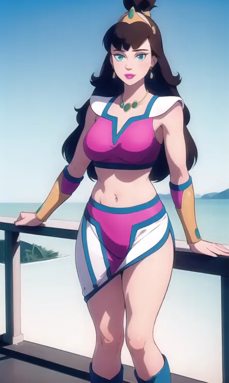 키워드: 라나 공주, 분홍 드레스, 중간복부 노출, 스커트, 부츠