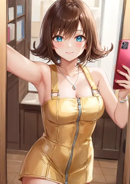 特徴的な姿を表現するには、「ネックレス、イエロードレス、ブーツ」を追加する。
