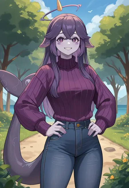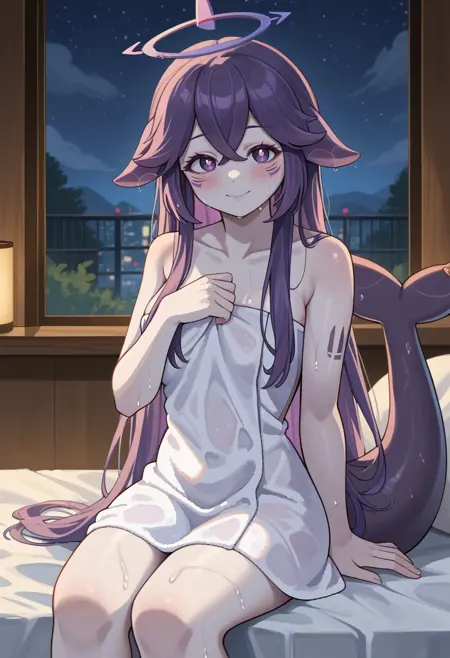 MegalodonVTuber, long hair, hair flaps, halo, cetacean tail, colored skin