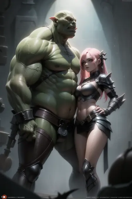 可使用的其他标签来修改或增强效果:兽人、怪物、绿色皮肤、强壮、体型差异、身高差异、獠牙、发光的眼睛、肥胖、胖男人、恐怖(主题)、阳刚 等。详见我的示例图像。