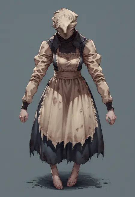看護師:dress, long sleeves, torn clothes, hood, apron,