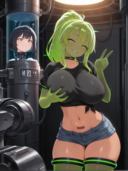Hologram Dullahan, Headless, transparent arms & leg; Control/Antenna Collar, TV head, Slime girl, stasis tank, etc Pony/illusXL