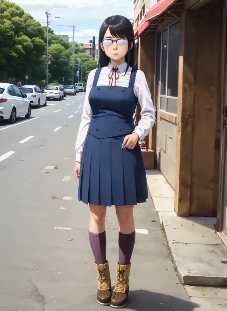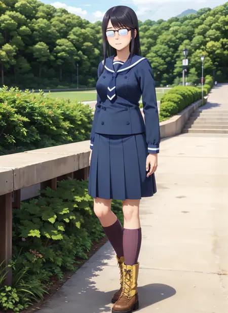 oono_makoto-wsf, 长发, 黑发, 侧刘海, 眼镜, 遮光眼镜, 全框眼镜