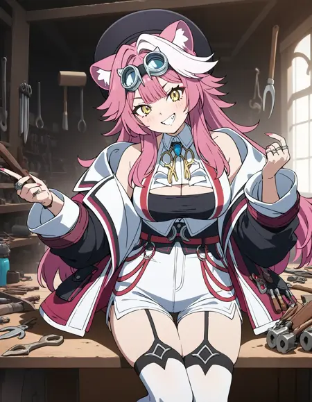 細部:zipper, fingerless gloves, bandaid on knee, clawed boots