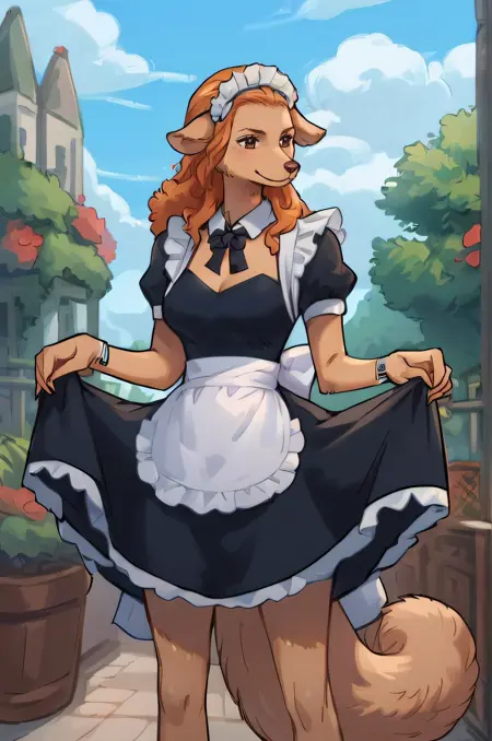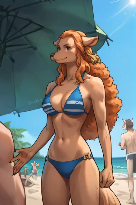 通常のワンダ: wanda, 犬の娘, ファーリー, 体毛, 茶色の毛, 長い髪, オレンジ色の髪, 茶色の目, 犬の耳, 尾, 鼻先,