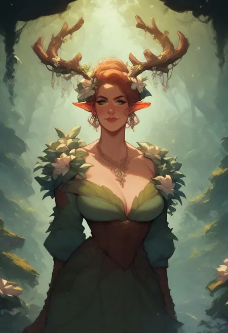 Designed to produce pin up style, potentially NSFW, art depicting various fantasy & sci fi character archetypes.