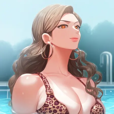 8. ((섹시한 에로틱한 컷아웃 표범 무늬 수영복, 저속한 가슴선, 엄청난 가슴선, )) 검은 선글라스,