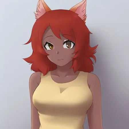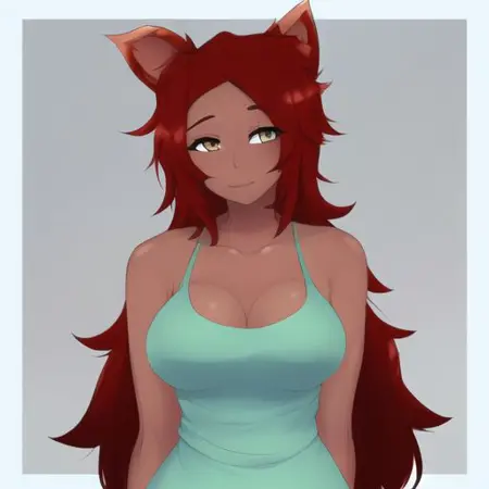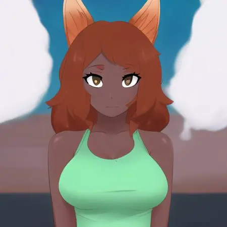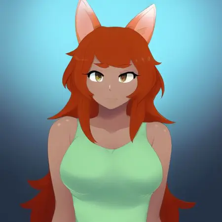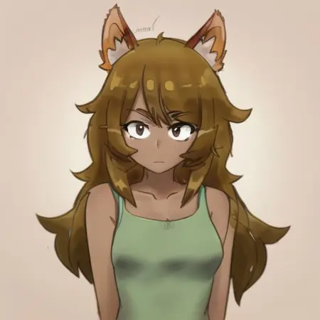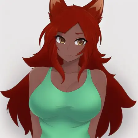 Helpful Positives: 1girl, brown skin, fox girl, green shirt
