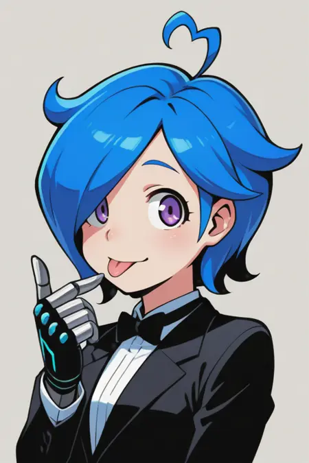 TAScorp Tari: Tari, Blue Hair, Purple Eyes, TAScorp Outfit, Mechanical Arm,