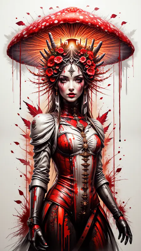 为在 Flux 中最大化发挥 “Mushroom Portraits of Women – Europe & Asia” 的效果,请使用触发词,例如: