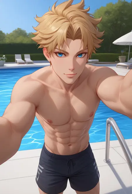 Genshirou Saji, Blonde Hair, Blue eyes, Short Hair, Parted Hair,