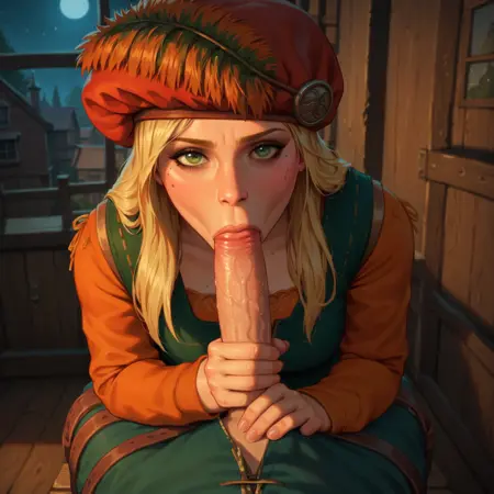 1girl, xpriscx, long hair, blonde hair, green eyes, freckles, mole