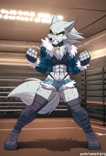 ヴェヴェラ: velvela、灰色の毛、オオカミ、黄色い目、傷、胸の毛束