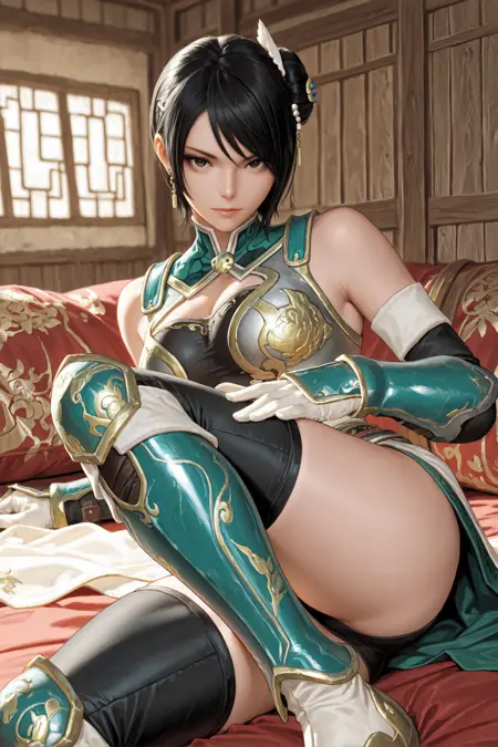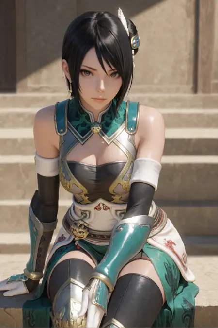 推奨ポジティブプロンプト:xingcai、1girl、シングル、黒髪、短髪、手袋、ジュエリー、鎧、髪飾り、イヤリング、タートハイ