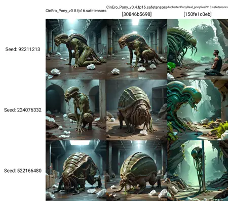 v1.0까지: 시네마틱 렌더링을 강화하기 위해 CinEro 시리즈의 사진적 사실성, 조명 및 해부학 관련 LoRas가 이 모델에 통합되었습니다.
