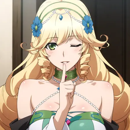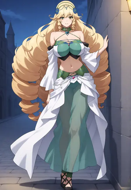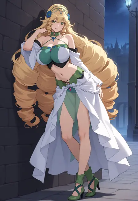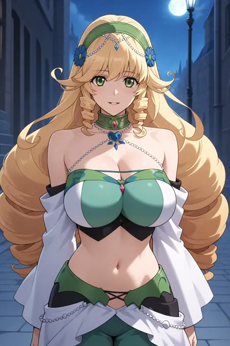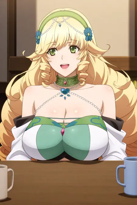 Animagine 的激活标签为 "sofya_obertas"。外观特征为:“金发、绿眼、长发、蓬松发饰、巨乳”。