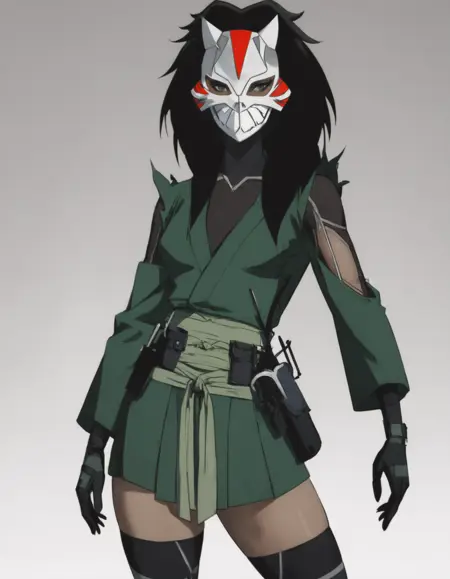- 如果想要柴郡猫的服装,请添加:gloves, thighhighs, japanese clothes, black gloves, black thighhighs, green kimono, bodysuit, belt