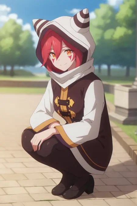 <lora:ArnesXL-v3-07:0.8>, ChopioArnes, 红发,头发遮住眼睛,面部标记,橙色眼睛,注视观众,