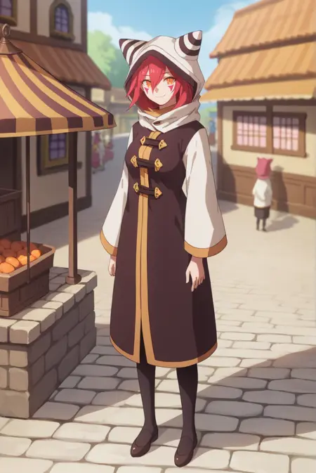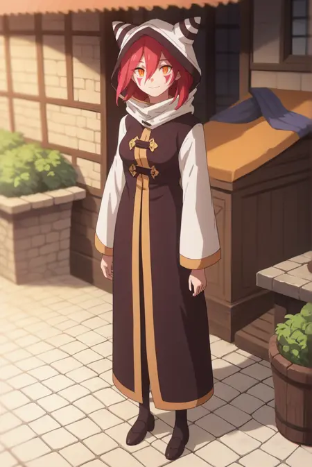 outfit_1,白色带帽长袍,黑色短外套,帽子抬起,黑色紧身裤,