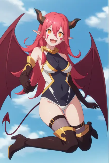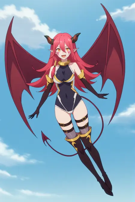 outfit_3,金色项圈,肘部手套,恶魔翅膀,紧身衣,恶魔尾巴,大腿绑带,灰色长筒袜,大腿靴,高跟靴,