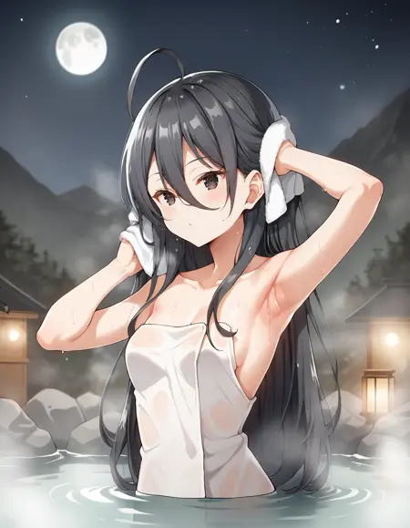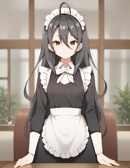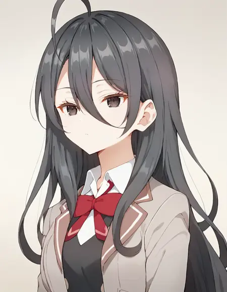<lora:ayano_kimishima_anime_v5-soralz:1>, ayano kimishima, long hair, black hair, ahoge, hair between eyes, long bangs, black eyes