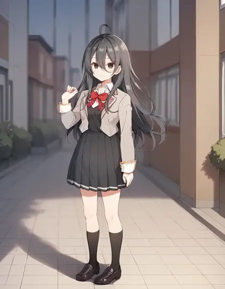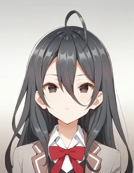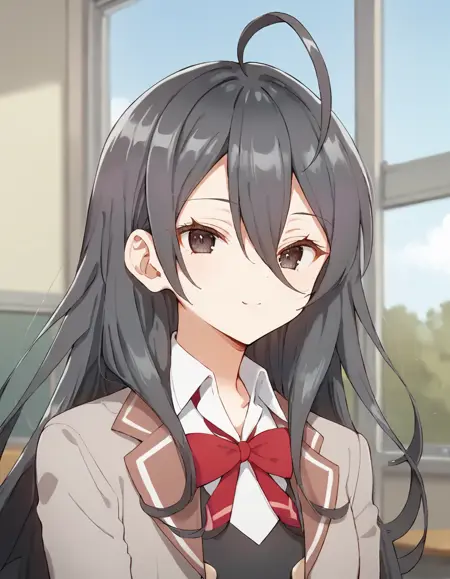<lora:ayano_kimishima-roshidere_s1-ixl-anime-soralz:1>, ayano kimishima (roshidere), long hair, black hair, ahoge, hair between eyes, long bangs, black eyes