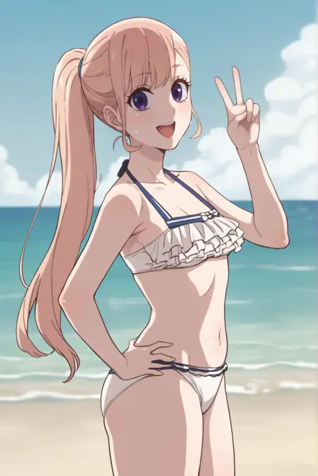outfit_5, 白色比基尼, 荷叶边比基尼, 白色比基尼下装,