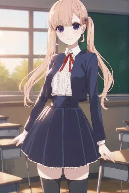 <lora:RirinaSanadaXL-v2-07:0.8>, ChopioRirina, 金发, 长发, 侧发, 紫色眼睛, 闪亮眼睛, 睫毛, 嘴唇, 盯着观众,