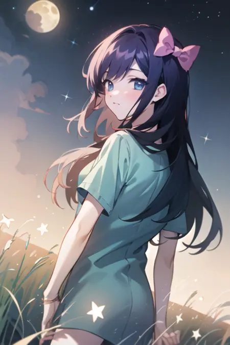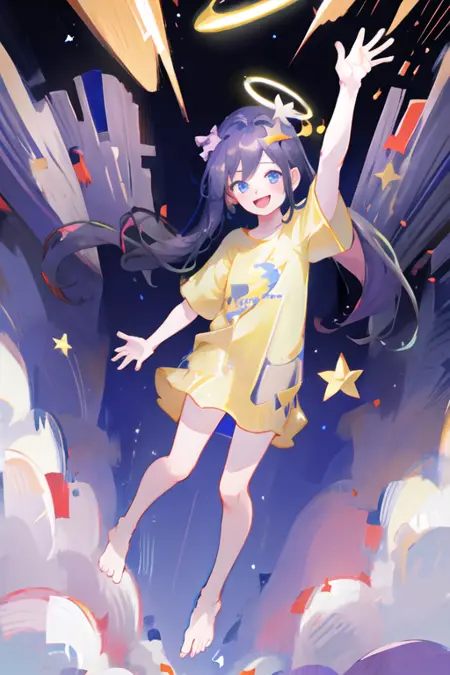 プロンプト: aubreyheadspace, 1girl, shirt, short sleeves, hair bow, smile.