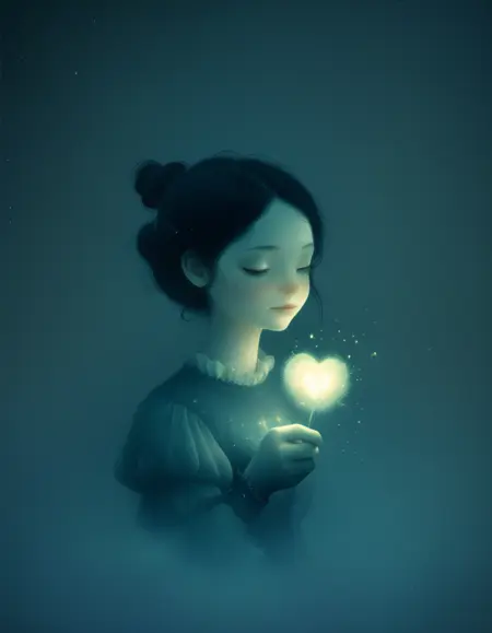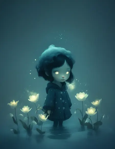 一种营造出极简构图的氛围风格,使用柔和的绿色、蓝灰色或黄色薄雾。图像中常以光线形式呈现黄色点缀,有时也可能是黄色的花朵或蝴蝶。此风格适合创作具有神秘或宁静感的画面。
