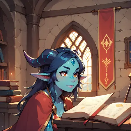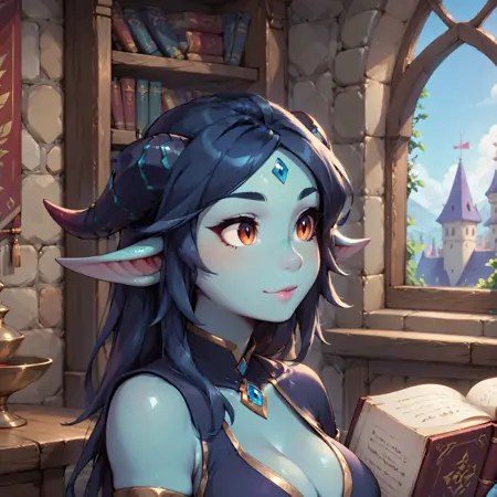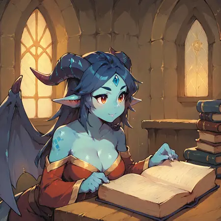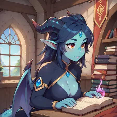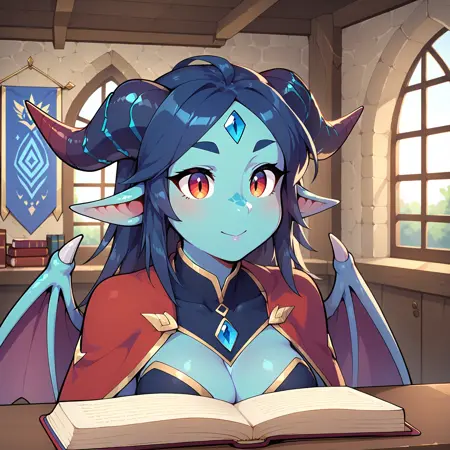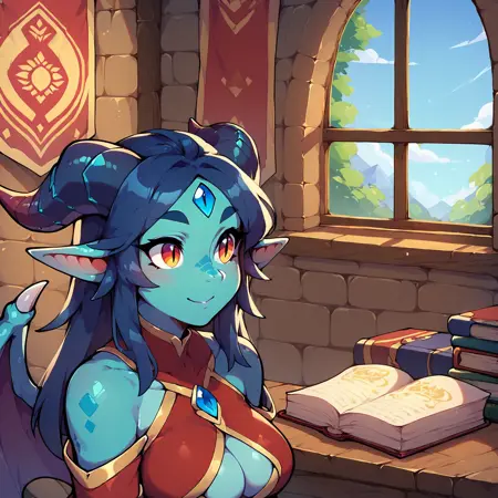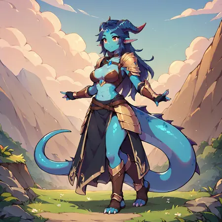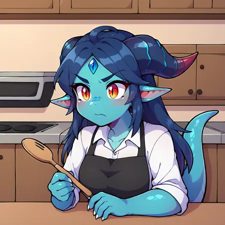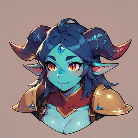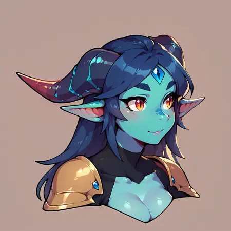 I picked her for her distinctive look, it makes it easy to tell when the LoRA is well trained to have distinctive elements such as her ears/horns, her nose scales, and her forehead crystal.