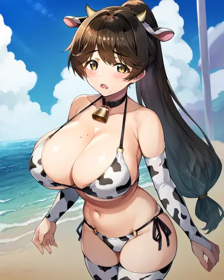 소 무늬 비키니, 가짜 뿔, 가짜 동물 귀, 소 무늬 팔 착용, 소 무늬 히그스
