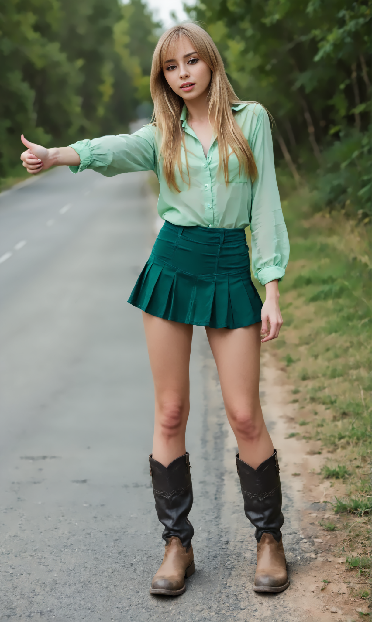 HiHike_, girl_ standing at <street/road>