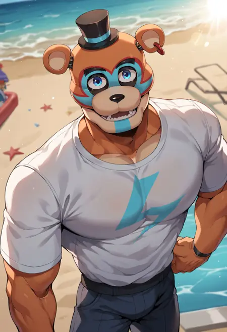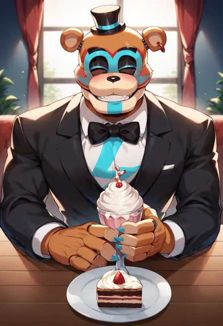 Five Nights at Freddy's: Security Breach의 Glamrock Freddy, Illustrious 및 PonyDiffusion 모델로 학습됨
