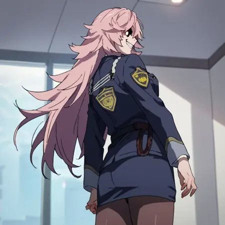 草壁弥生,又称“鞭子面具”,是《高层入侵》中一位引人入胜的角色。她由相川守控制,拥有醒目的粉红色头发和深粉色眼睛,与她曲线优美的身材相得益彰。她常穿着紧身警察制服,腰间佩戴一条鞭子。尽管她有时会摘下面具,露出完整的粉红色嘴唇和层叠的刘海,但仍保持着威严与神秘的气质。弥生经常通过平板电脑监控局势,进一步增添了她在系列中的神秘感。