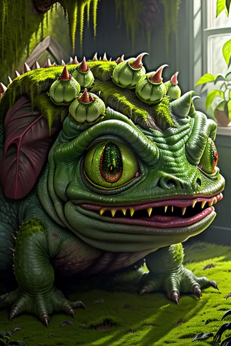 通过调整 lora 的权重以及“(swampstyle monster:1.0)”的影响程度,可获得不同的效果。
