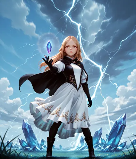 已提供PonyXL LoRA,建议强度设为1。如果生成了她拿着某物(如书本)而你并不希望如此,请在负面提示中添加“holding”和“book”。