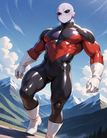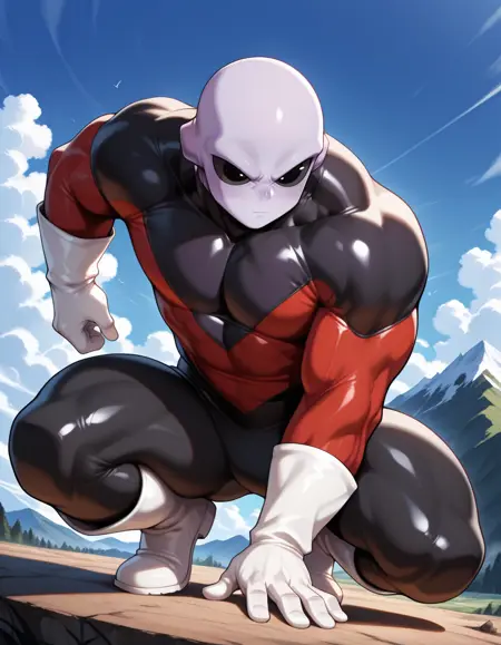 JirenP, 1boy, bald, male focus, black eyes, black sclera, muscular, colored skin, purple skin