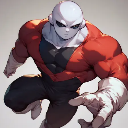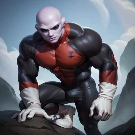 JirenP, 1boy, bald, male focus, black eyes, black sclera, muscular, colored skin, purple skin