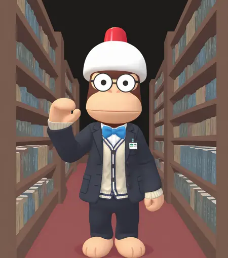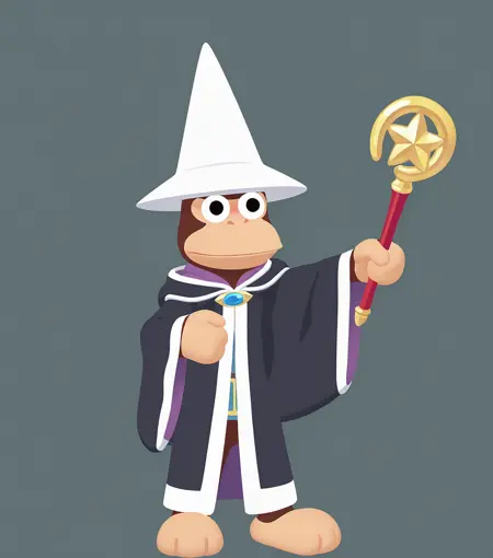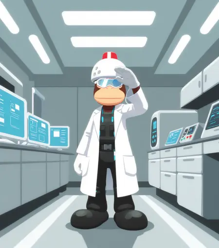 Triggers: p1p0, ape, solo, full body, white helmet, simple background, no humansNegative: humans, rabbit ears